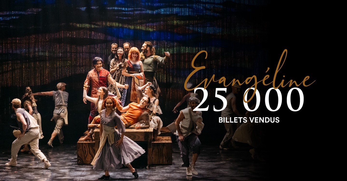 À deux mois jour pour jour du début des représentations, Gestev et Musicor sont fières d’annoncer que la production à grand déploiement Évangéline | Le spectacle musical vient de franchir le cap des 25 000 billets vendus et celui des 10 000 exemplaires écoulés pour sa trame sonore, parue en octobre dernier et toujours disponible en magasin puis sur l’ensemble des plateformes numériques. Voilà une réponse du public des plus enthousiastes, qui confirme l’engouement suscité par cette histoire d’amour poignante et universelle qui prendra vie de façon grandiose à Montréal, Québec (où 4 représentations affichent déjà complet !), Trois-Rivières et Moncton en 2026 !